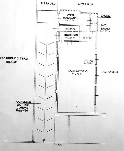 Spazio seminterrato di oltre 150 mq. commerciali con destinazione catastale C/3 cosi suddiviso: ingresso/ufficio, laboratorio "open space", magazzino con ingresso carrabile e bagno. Usufruibile anche come studio professionale.