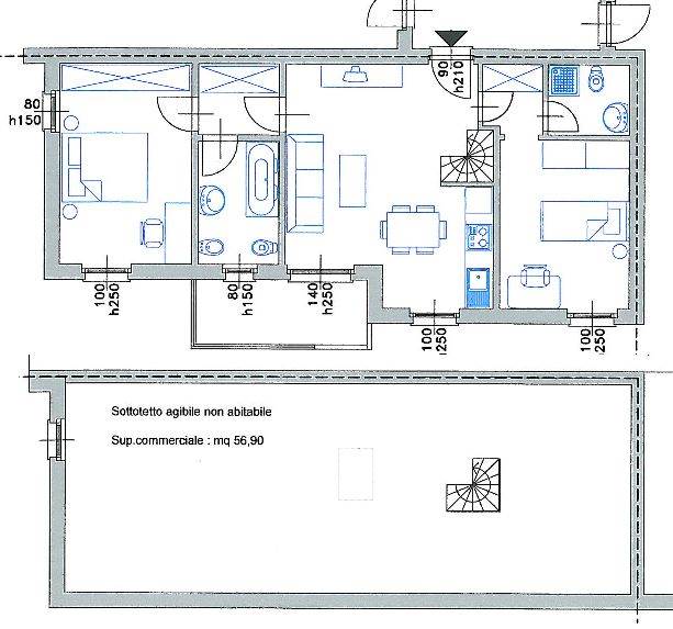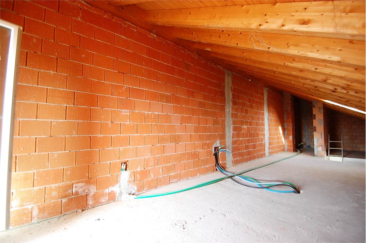 APPARTAMENTO DUPLEX di nuova costruzione in contesto signorile, ottime finiture, super accessoriato. Alloggio al secondo piano di mq. 80 ca. oltre mansarda a rustico, da rifinire di mq. 54 ca.: soggiorno c/angolo cottura, 2 camere, d/servizi e balcone. La mansarda, che viene consegnata con la predisposizione degli impianti, consente di ricavare uno spazio extra di due camerette con ripostigli armadio e bagno. Box doppio + posto auto scoperto.